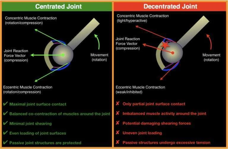So what is ‘joint centration’? ‘Centration’ means that the joints (where two bones connect) have maximally congruent contact throughout the motion. In the spine, flexion with joint-centration would look like a uniform curve with movement (the above picture shows a uniform vs non-uniform curve). The muscles around the joint would be balanced throughout the motion with the agonist and antagonist muscles co-contracting. Without joint centration, there would be an imbalance in the muscles and increased pressure/strain on passive structures like ligaments, cartilage, and discs. Over time this strain on passive structures would eventually contribute to injuries or flare-ups.